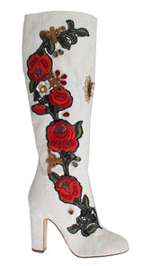 Gorgeous, brand new with tags 100% Authentic Dolce & Gabbana white Roses embroidered Enchanted Heart Swarovski Crystal boots. This items comes from the exclusive MainLine Dolce & Gabbana collection.