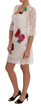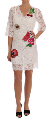 Gorgeous brand new with tags, 100% Authentic Dolce & Gabbana white lace mini dress with colorfull sequin embellishments.