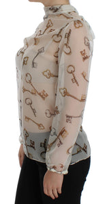 Gorgeous brand new with tags, 100% Authentic DOLCE & GABBANA white key print silk blouse top. This item comes from the exclusive MainLine Dolce & Gabbana Collection.