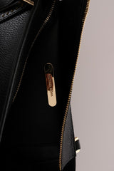 Gold tone hardware.