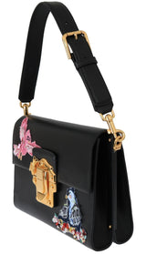Gorgeous brand new with tags, 100% Authentic Dolce & Gabbana black leather sequined beaded Bird embroidery LUCIA bag purse.