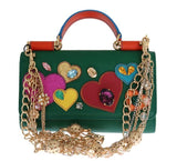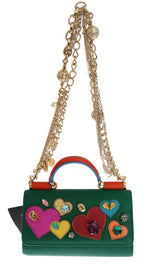 Gorgeous brand new with tags, 100% Authentic Dolce & Gabbana green leather crystal heart SICILY VON clutch phone bag purse.