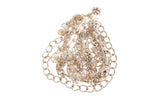 Handle: One handle, detachable gold crystal embellished chain with lobster clasps