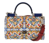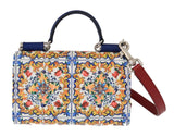 Gorgeous brand new with tags, 100% Authentic Dolce & Gabbana multicolor Majolica print dauphine leather SICILY bag purse.