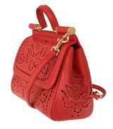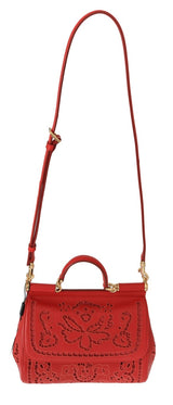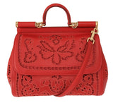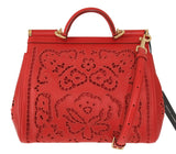 Gorgeous brand new with tags, 100% Authentic Dolce & Gabbana red leather floral cutout SICILY bag purse.