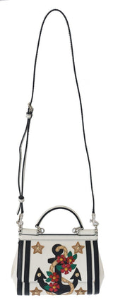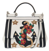 Gorgeous brand new with tags, 100% Authentic Dolce & Gabbana white leather anchor sailor embroidered SICILY bag purse.