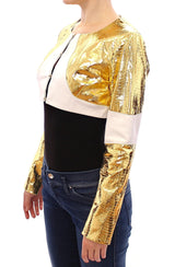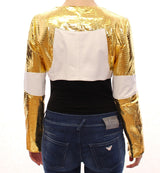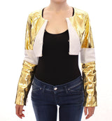 Gorgeous brand new with tags, 100% Authentic VLADIMIRO GIOIA white and gold metallic leather short jacket. Very exclusive and very rare to find Vladimiro Gioia at outlet prices.