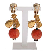 Gorgeous Brand New with Box 100% Authentic Exclusive Dolce & Gabbana gold Fig crystal clip on earrings.