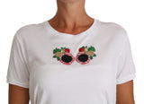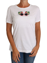 Color: White with multicolor sunglasses applique
