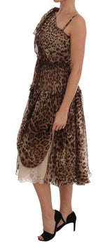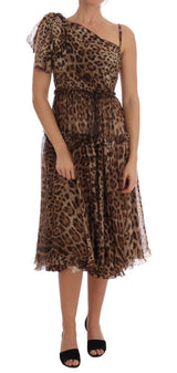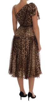 Gorgeous brand new with tags, 100% Authentic Dolce & Gabbana organza silk one-shoulder leopard dress.