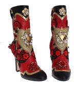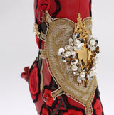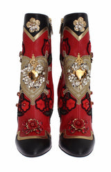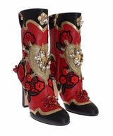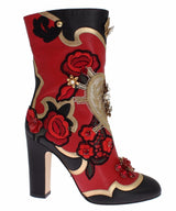 Dolce & Gabbana boots for women. Multicolor Roses embroidered Enchanted Heart Swarovski Crystal mid calf boots. This items comes from the exclusive MainLine Dolce & Gabbana collection. Gorgeous, brand new with tags 100% Authentic