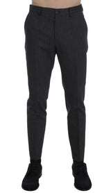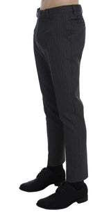 Gorgeous brand new with tags, 100% Authentic DOLCE & GABBANA gray striped cotton wool slim fit casual trousers pants.