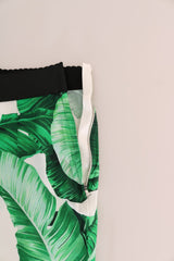 Color: White with green Banana leaf print