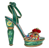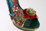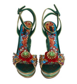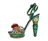 Gorgeous brand new with tags, 100% Authentic Dolce & Gabbana green leather crystal sequined Pom Pom platform heels sandals.