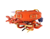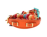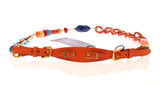 Color: Orange leather, gold metal, multicolor beaded detailing