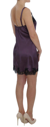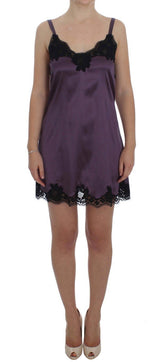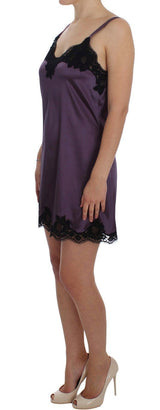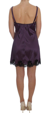 Gorgeous brand new with tags, 100% Authentic DOLCE & GABBANA purple silk black floral lace Lingerie chemise dress.