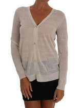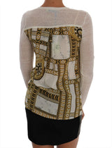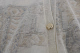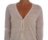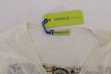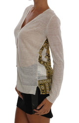 White Linen Silk Baroque Print Cardigan Sweater