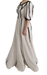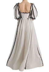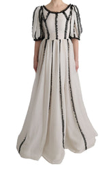 Gorgeous brand new with tags, 100% Authentic DOLCE & GABBANA white silk black lace maxi dress gown.