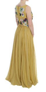 Gorgeous brand new with tags, 100% Authentic Dolce & Gabbana yellow silk applique crystal full length ball gown dress.