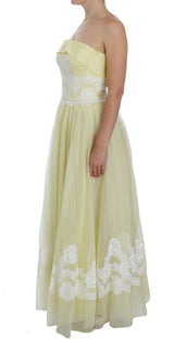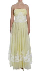 Gorgeous brand new with tags, 100% Authentic DOLCE & GABBANA yellow and white floral lace silk full length maxi dress.